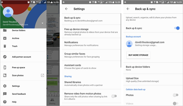 - 選擇並打開“備份和同步”選項。然後,您的所有照片將被備份並同步到 Google 相冊。