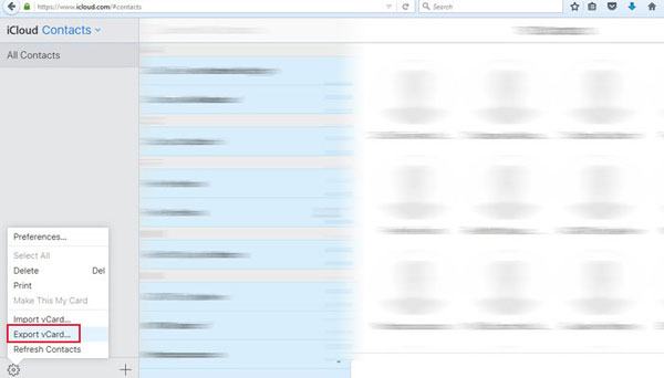 或者,如果您已將文件同步到雲端,則可以訪問 iCloud 網站從備份中提取 iPhone 聯繫人。該網站允許您將聯繫人(.vcf 文件)導出到您的計算機。