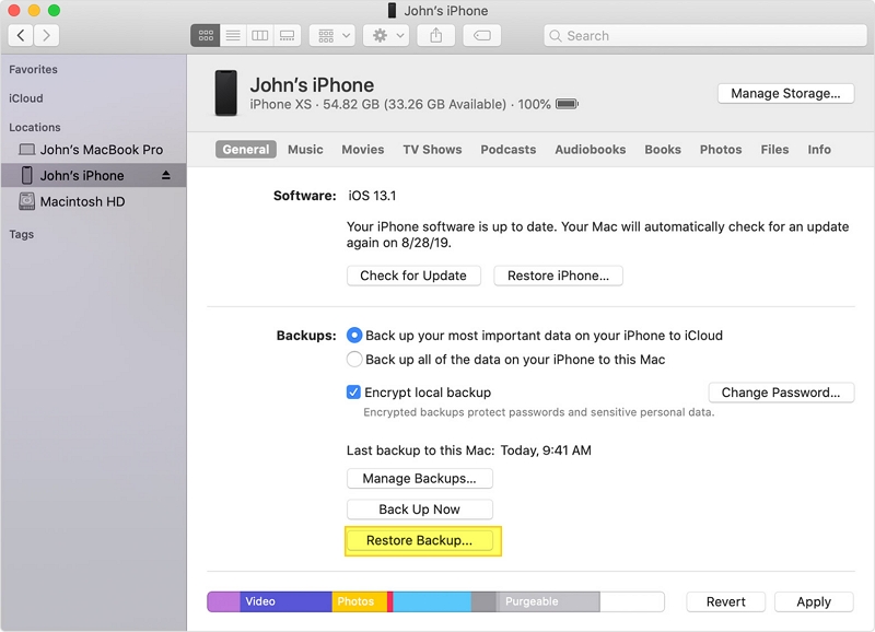 - 現在,您可以在Finder或iTunes中還原iPhone。