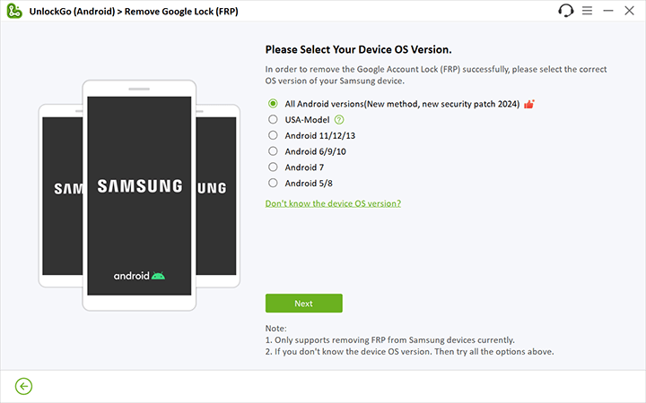 但是Unlockgo(Android)旨在僅3個步驟繞過FRP,而無需任何麻煩,您不需要下載FRP旁路APK文件,並且不需要Android FastBoot模式或ADB USB驅動程序。