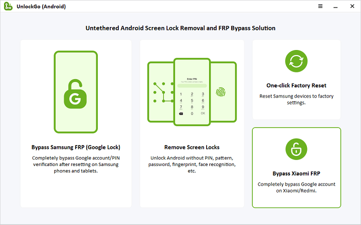 以下是使用 UnlockGo Android FRP 繞過工具繞過小米 A3 上的 FRP 的步驟。