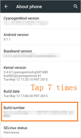 步驟2。尋找”構建號碼”並點擊7次。然後一條消息”您現在是開發人員彈出。