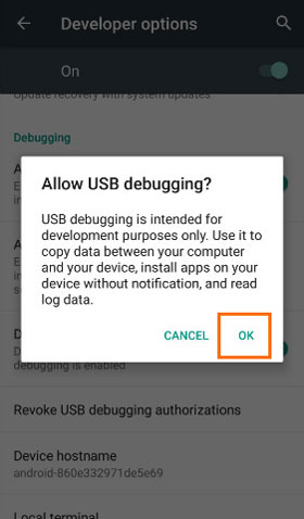 步驟5。點擊好的“在看到通知“允許USB調試? ”之後?