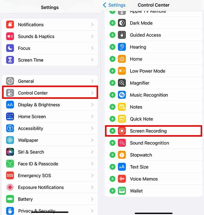 如果您在控制中心找不到“錄製”按鈕,請按照以下步驟操作: