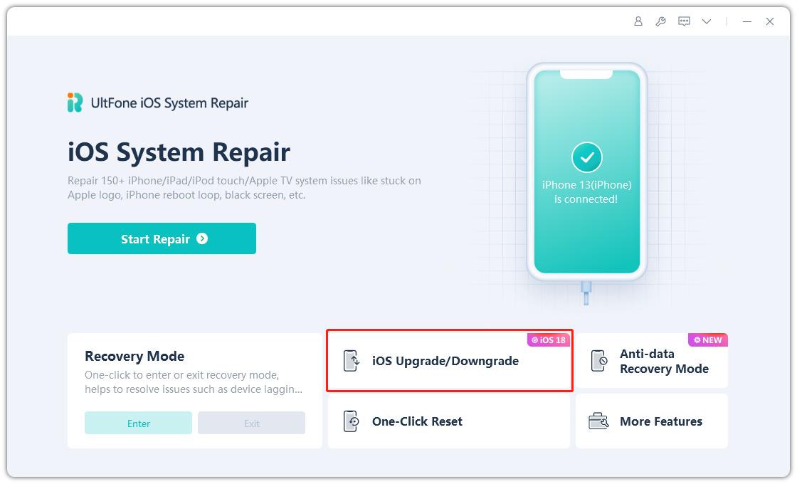 對 iOS 26 Beta 不滿意?遇到太多錯誤或電池耗盡? UltFone 允許您安全地降級到以前的 iOS 版本(例如 iOS 18 或 17),而無需越獄或使用 iTunes。這是一個簡單的一鍵式過程,可以刪除測試版。它還可以將您的設備恢復到穩定的操作系統,無需開發人員帳戶。 - 修復了 150 多個 iOS 系統問題