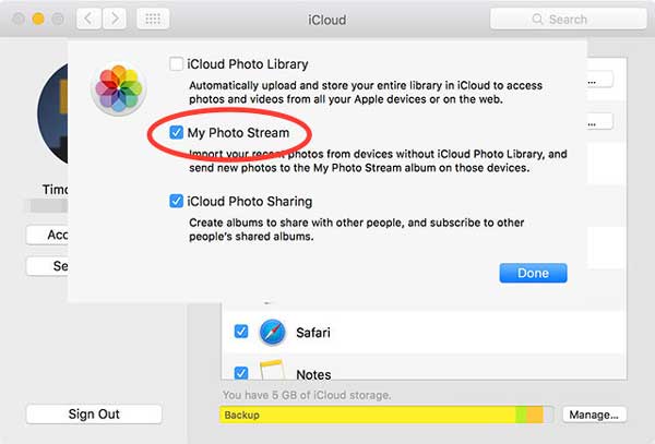 - 成功登錄帳戶後,您可以繼續轉到 iCloud 照片選項並啟用“iCloud 照片庫”和“我的照片流”。