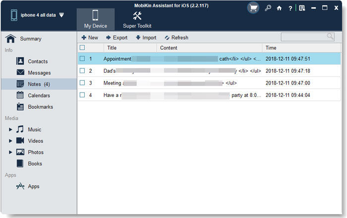 MobileKin 還讓您更輕鬆地隨心所欲地管理您的 iPhone/iPad/iPad。例如,它可以讓您在 iPhone 上添加新筆記、將筆記從計算機導入 iPhone,以及將 iPhone 筆記和其他數據導出到 PC/Mac 以便輕鬆打印。