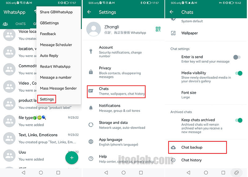 步驟 4。點擊“聊天備份”,通過執行此操作,將在手機的內存中創建備份。