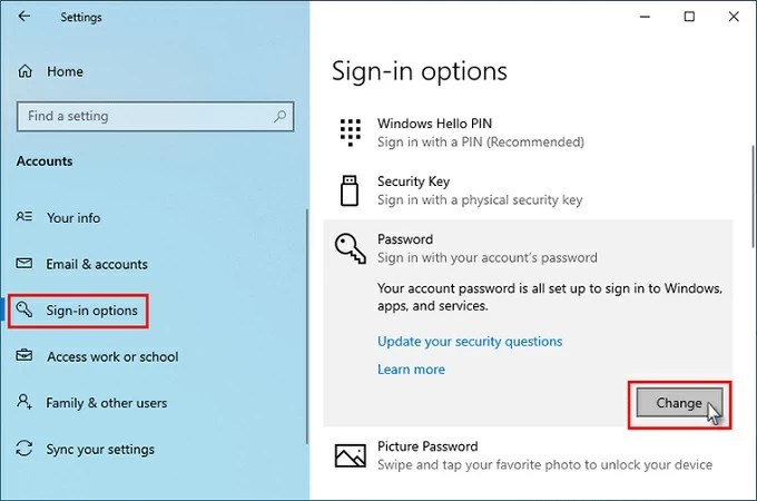 如果您將來忘記 Windows 10 密碼,這提供了一種恢復 Windows 10 密碼的簡單方法。添加密碼提示或更新安全問題。