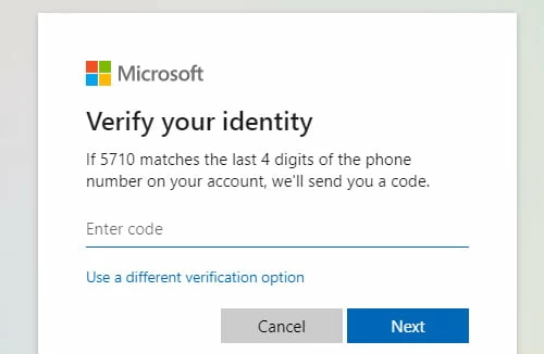 6.正確輸入代碼並點擊下一個以便 Microsoft 可以驗證您的身份。