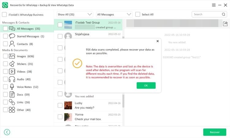 - 檢索 WhatsApp,包括通話記錄、視頻、照片,無需備份。