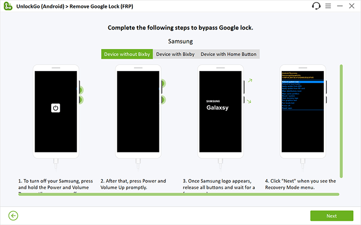 以下是如何使用 UnlockGo (Android) 繞過 Samsung FRP。