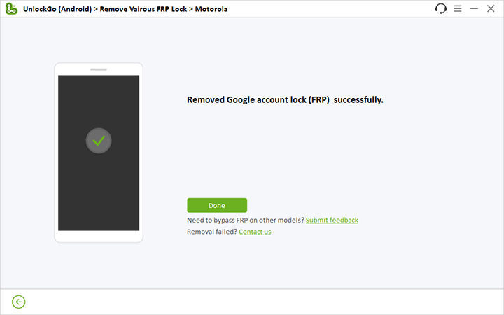 就這樣。您已成功從 Motorola 設備中刪除 FRP。不要猶豫,下載這個強大的 Moto FRP 工具來解鎖您的設備。