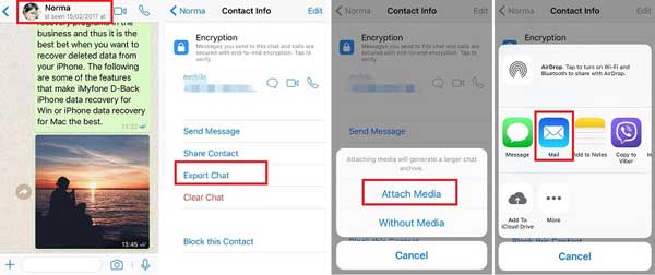 5. 然後選擇郵件圖標並輸入您的電子郵件地址,點擊“發送”選項將 iPhone WhatsApp 消息導出到電子郵件。