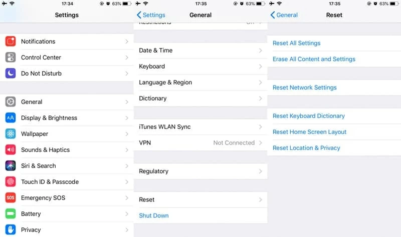 您可以嘗試的另一種方法是將 iPhone 恢復到默認設置。這不會刪除您的內容(Apple Pay 卡除外)。請按照以下步驟操作: