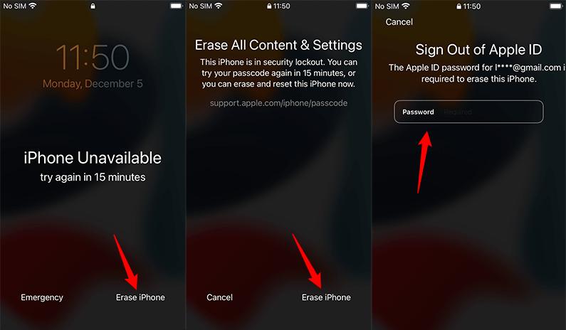 修復 iPhone 不可用計時器的最後方法是使用您的 Apple ID 密碼抹掉您的 iPhone。要使用 Apple ID 密碼抹掉 iPhone,您可以按照以下步驟操作: