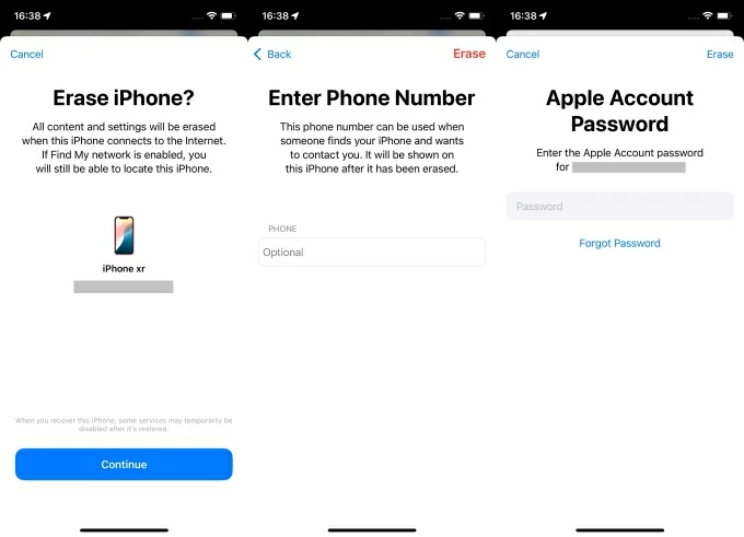 5. 驗證您的 Apple 帳戶密碼後,點擊擦除在您不可用的 iPhone 上觸發重置。