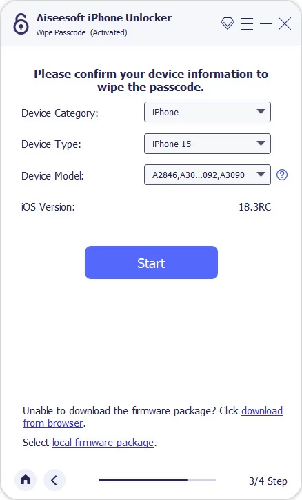 4. 檢測到後,確認您的設備詳細信息並單擊開始獲取正確的 iOS 固件。