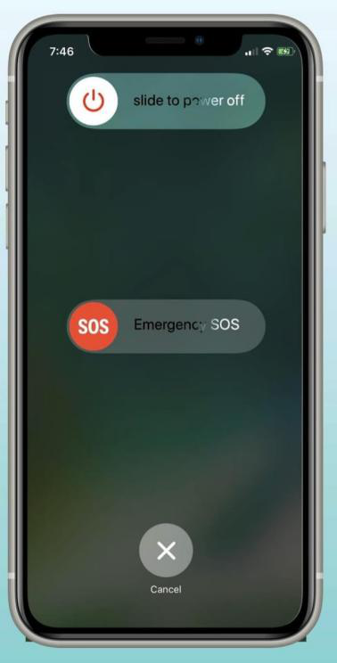 2.出現滑塊。將滑塊拖向電源圖標並等待 30 秒直至手機關閉。