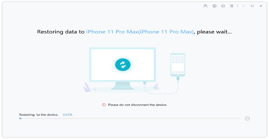 步驟4:現在UltFone iOS數據管理器會將數據恢復到您的設備;同時,您需要耐心等待該過程結束。