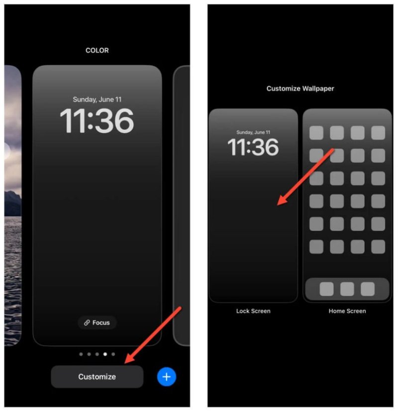 在 iOS 26 中重新自定義鎖屏時鐘和壁紙可以通過強制系統刷新這些元素的顯示方式來修復故障。它還有助於解決與可能干擾時鐘的小部件或視覺效果的衝突。重置這些設置會清除所有損壞的配置,修復“iOS 26 無法更改時鐘大小”問題: