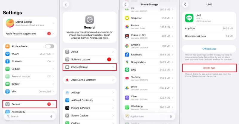 第 1 步:接下來,前往 iPhone 上的“設置”。然後,選擇“常規”。點擊“iPhone存儲”。