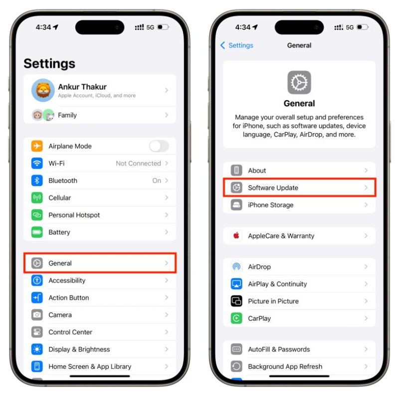您可以通過將 iPhone 升級到最新版本的 iOS 來解決 iOS 26 鎖定屏幕無法工作的問題。這將消除錯誤並解決“iOS 26 鎖定屏幕無法工作”的故障。將 iPhone 升級到最新 iOS 版本的方法如下: