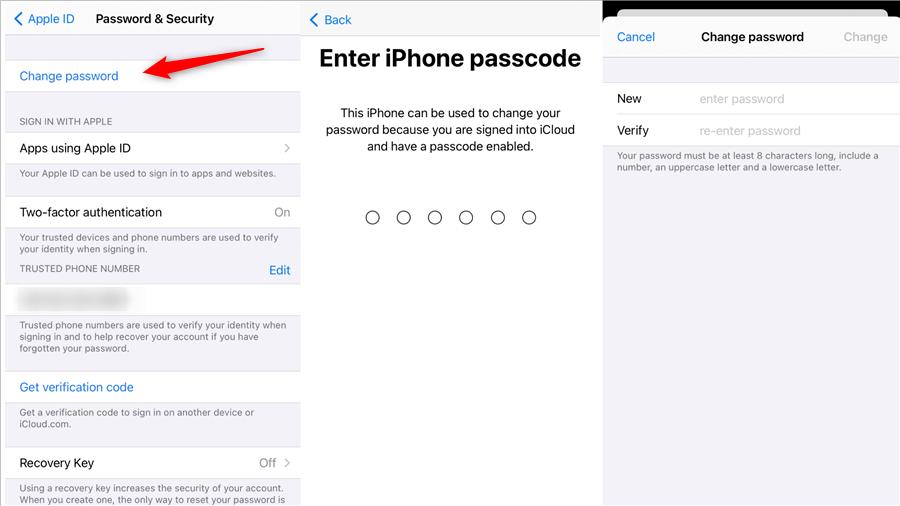 - 點擊“更改”,然後使用新密碼登錄您的 Apple ID/Apple 帳戶,查看錯誤是否已修復。