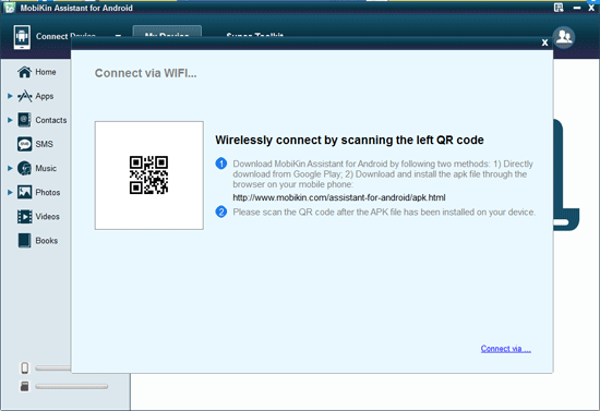 MobileKin Android 文件傳輸(Windows 和 Mac)是一款功能強大且專業的軟件,可以讓用戶在Android和電腦之間傳輸聯繫人、書籍、音樂和消息等文件。該軟件可以自動深度檢測和掃描設備。整個過程很簡單,只需3步即可完成。下面有免費試用版,您可以嘗試一下。