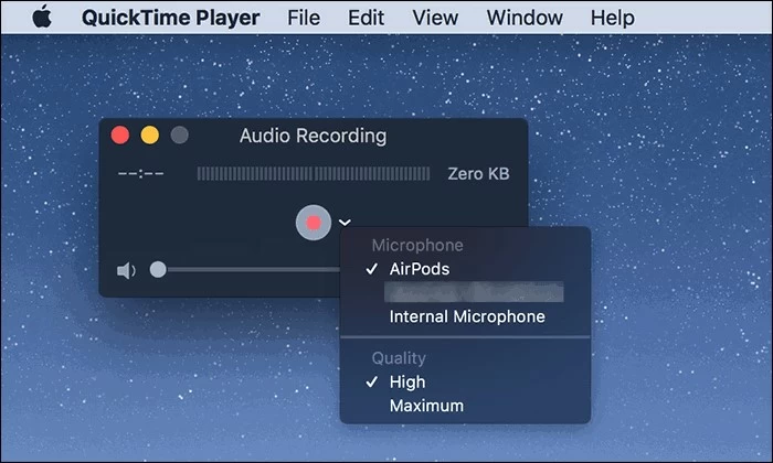 QuickTime Player 本身只能錄製麥克風聲音,無法捕獲 Mac 上的內部音頻。要從 Mac 上的網站或應用程序錄製流式音頻,QuickTime 必須與其他聲音驅動程序一起使用,例如 Soundflower。