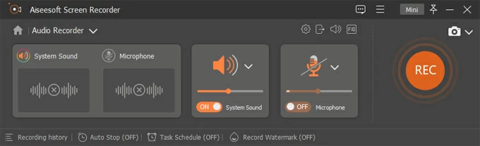 然後打開系統聲音從計算機捕獲流音頻的選項。通過打開麥克風,同時播放流媒體音頻時也可以錄製來自麥克風的外部音頻麥克風按鈕。