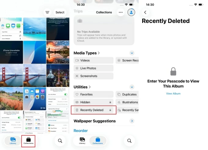 最近刪除的相冊是 iOS 中“照片”應用程序的一項內置安全功能,充當回收站,讓您在刪除照片後有 30 天的時間來改變主意。當你的照片被刪除,尤其是最近刪除的照片時,你應該首先檢查這個臨時存儲空間,看看是否可以將刪除的照片恢復到你的iPhone 17上。