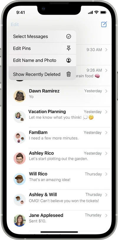 是的,如果您在過去30天內刪除了iPhone消息,則可以輕鬆地從消息應用程序中最近刪除的文件夾中恢復它們。但是,請注意,它僅適用於iOS 16及以後。