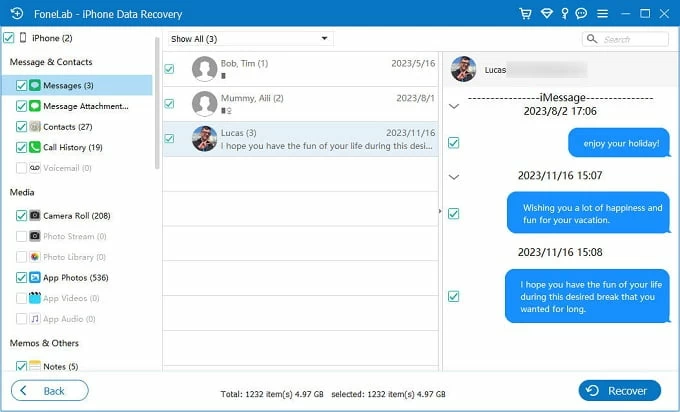 對於未經任何備份而刪除的消息,iPhone數據恢復提供了潛在的解決方案 - 它的免費版本使您可以深入掃描iPhone以預覽所有可恢復的文本和iMessages,而完整版則可以無限制地恢復所有已刪除的消息。