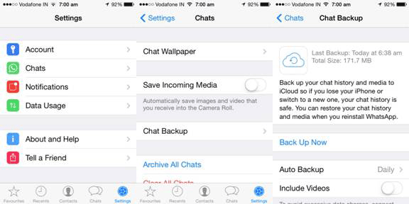 要使用 WhatsApp 恢復功能備份 WhatsApp 視頻,請按照以下步驟操作: