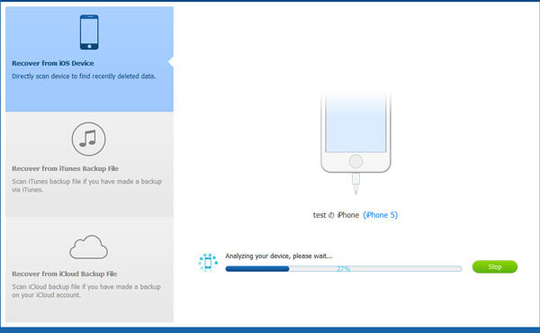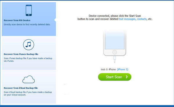 步驟1。通過避雷線將 iPhone 連接到電腦。下載並安裝後啟動該實用程序。接下來,選擇“從 iOS 設備恢復”並按“開始掃描”按鈕。