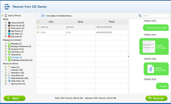 它能夠恢復整個iOS內容,包括WhatsApp、WhatsApp附件、照片、消息、消息附件、聯繫人、通話記錄、語音郵件、筆記、日曆、提醒、Safari歷史記錄、應用程序文檔等。