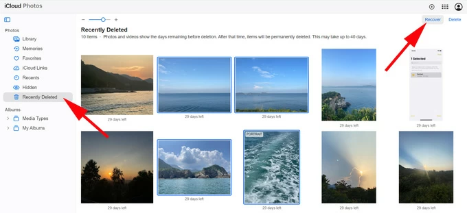 如何在 icloud.com 中檢索最近刪除的 iPhone 照片