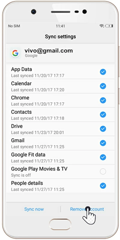 4. 當提示確認時,選擇刪除帳戶然後單擊“確定”將其刪除並禁用 Vivo FRP。您可能需要輸入手機的屏幕鎖定才能完成該過程。