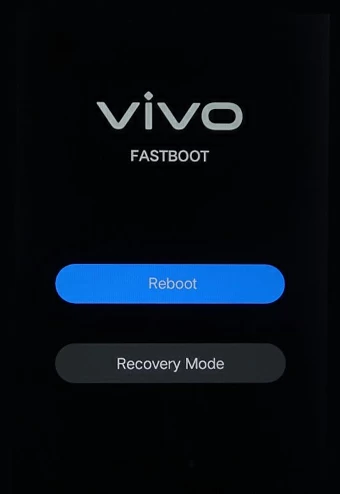 2. 按住力量按鈕和調高音量同時按住 鍵幾秒,直至出現 VIVO FASTBOOT 界面。