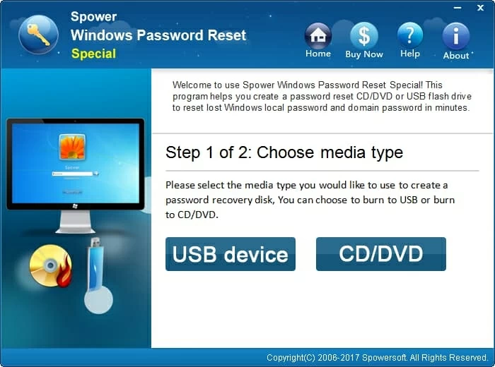 在任何可訪問的計算機上運行此 Windows Server 2012 R2 密碼重置軟件,並將空白 USB 閃存驅動器或 CD/DVD 介質插入機器。