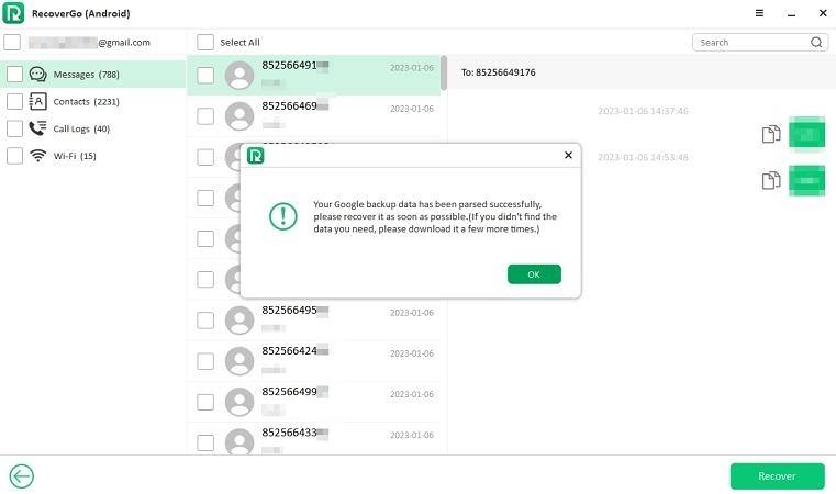 下載Google備份後,備份歷史記錄還將存儲在recuretgo Android軟件中,您可以隨時查看和還原。