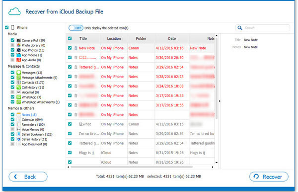 步驟3。預覽掃描結果,然後選擇要恢復的筆記。然後點擊“恢復”按鈕以將其保存在您的計算機上。