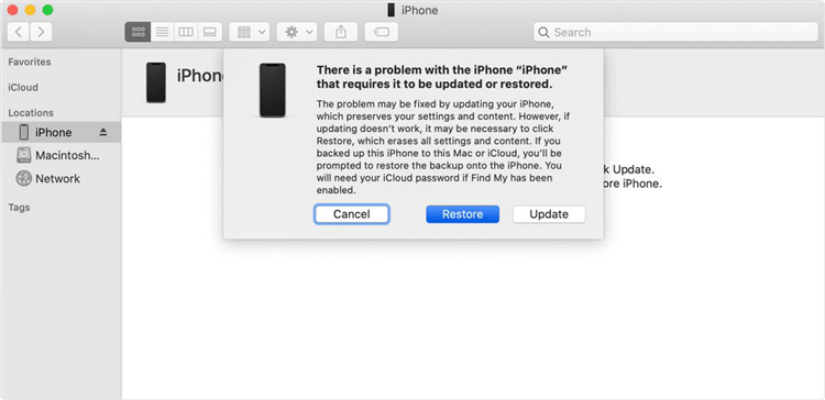 - iTunes 將檢測您的設備,然後在彈出框中單擊恢復。該平台將花費約30分鐘使用之前創建的備份恢復您的 iPhone 11。