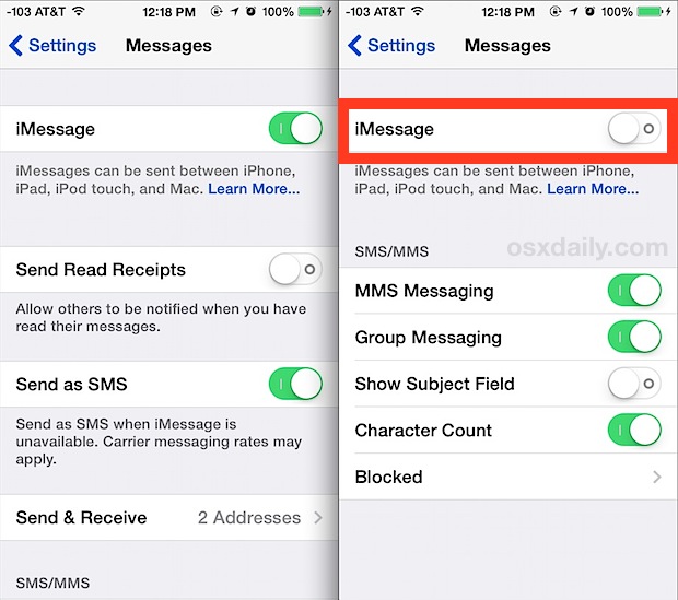 - 現在簡單地關閉 iMessage。