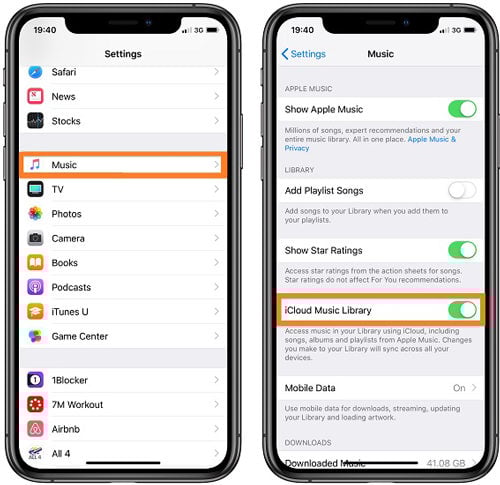 - 打開“設置”,點擊“音樂”,然後關閉“iCloud 音樂庫”選項。