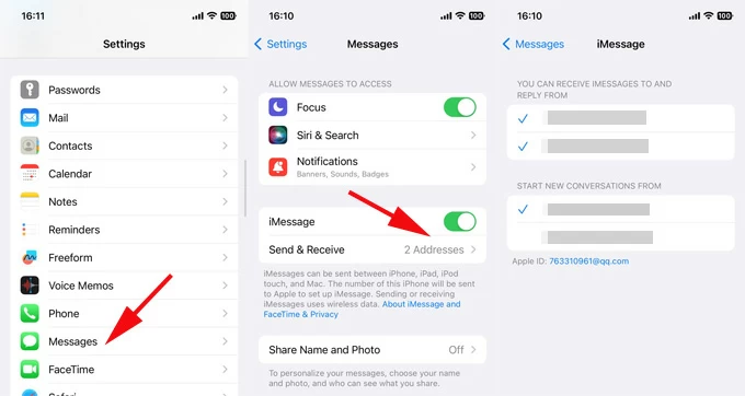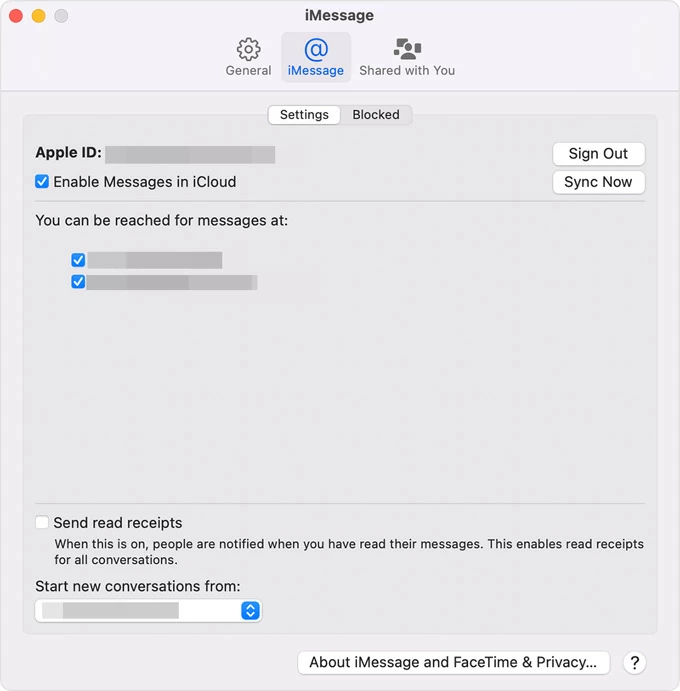 使iPhone在Mac上同步短信的另一件事是啟用電話號碼和電子郵件地址。禁用它們應阻止消息同步到其他設備。