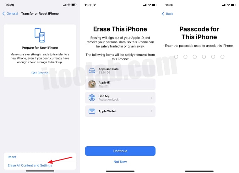 - 系統將提示您輸入密碼,然後等待設備擦除所有內容。