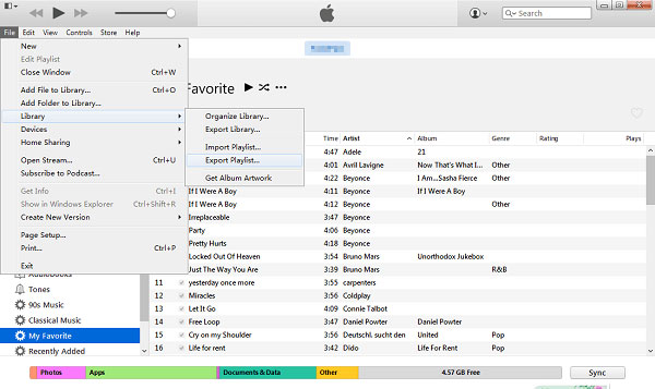 - 選擇“庫”,然後選擇“導出播放列表”以導出所需的播放列表。