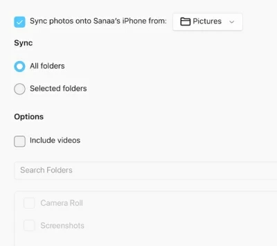 4. 選擇您要傳輸的文件夾或相冊,然後決定是同步整個文件夾還是僅同步選擇照片。